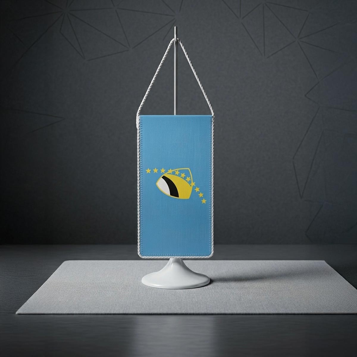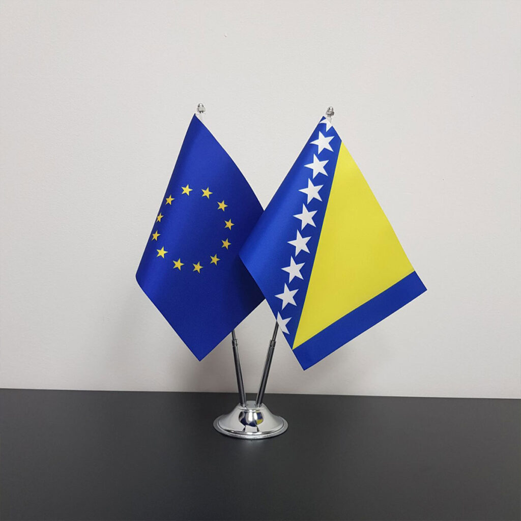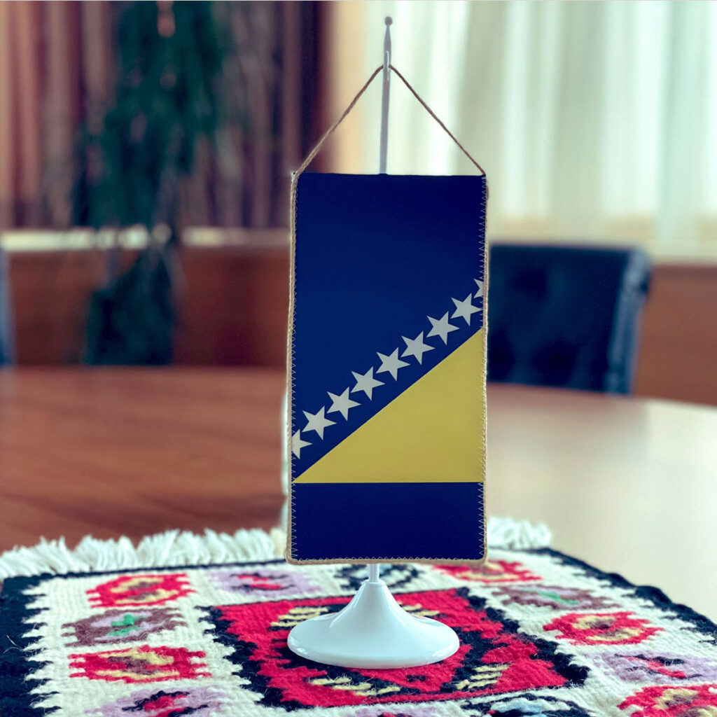 Elegantan detalj za kancelarije, sale i protokolarne događaje. Na stalku ili bez njega, stolne zastavice uvijek unose svečan ton i prepoznatljiv identitet.