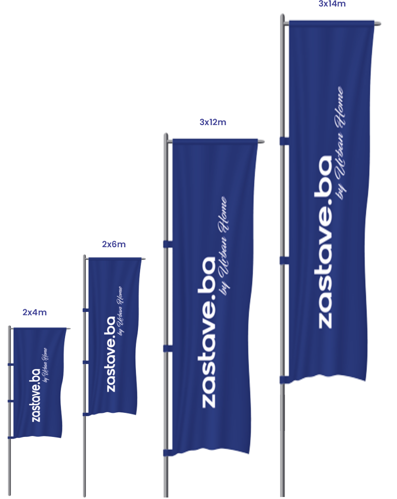 Vertikalne zastave – uvijek istaknute i vidljive zahvaljujući bočnom nosaču koji drži platno napetim, bez obzira na vjetar.